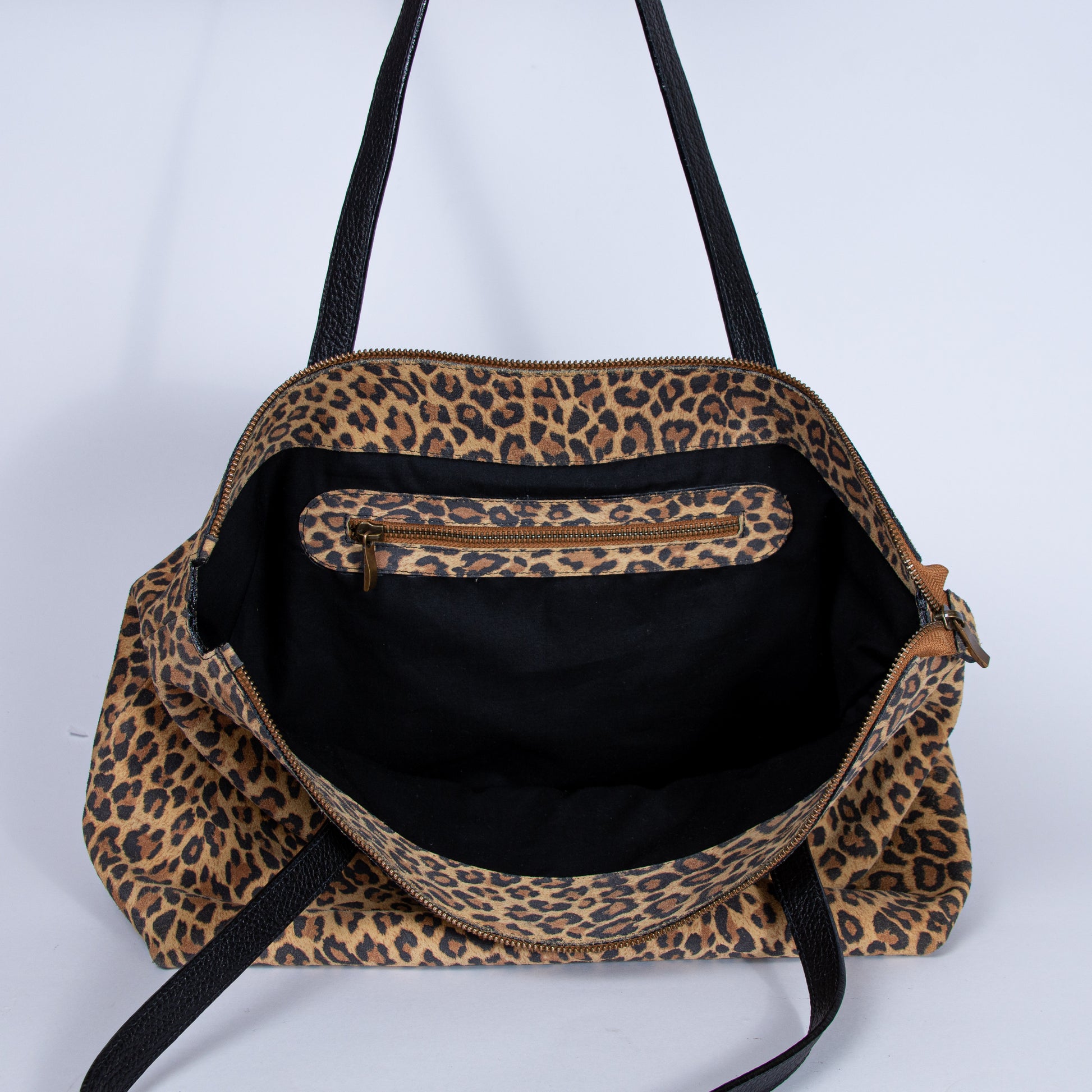 La cartera Florencia 100% cuero animal print es una de nuestras favoritas de la colección. De mano, con manija de cuero super chic, o de cruzar con la correa larga webbing negra, es un buen statement. Práctica y moderna.